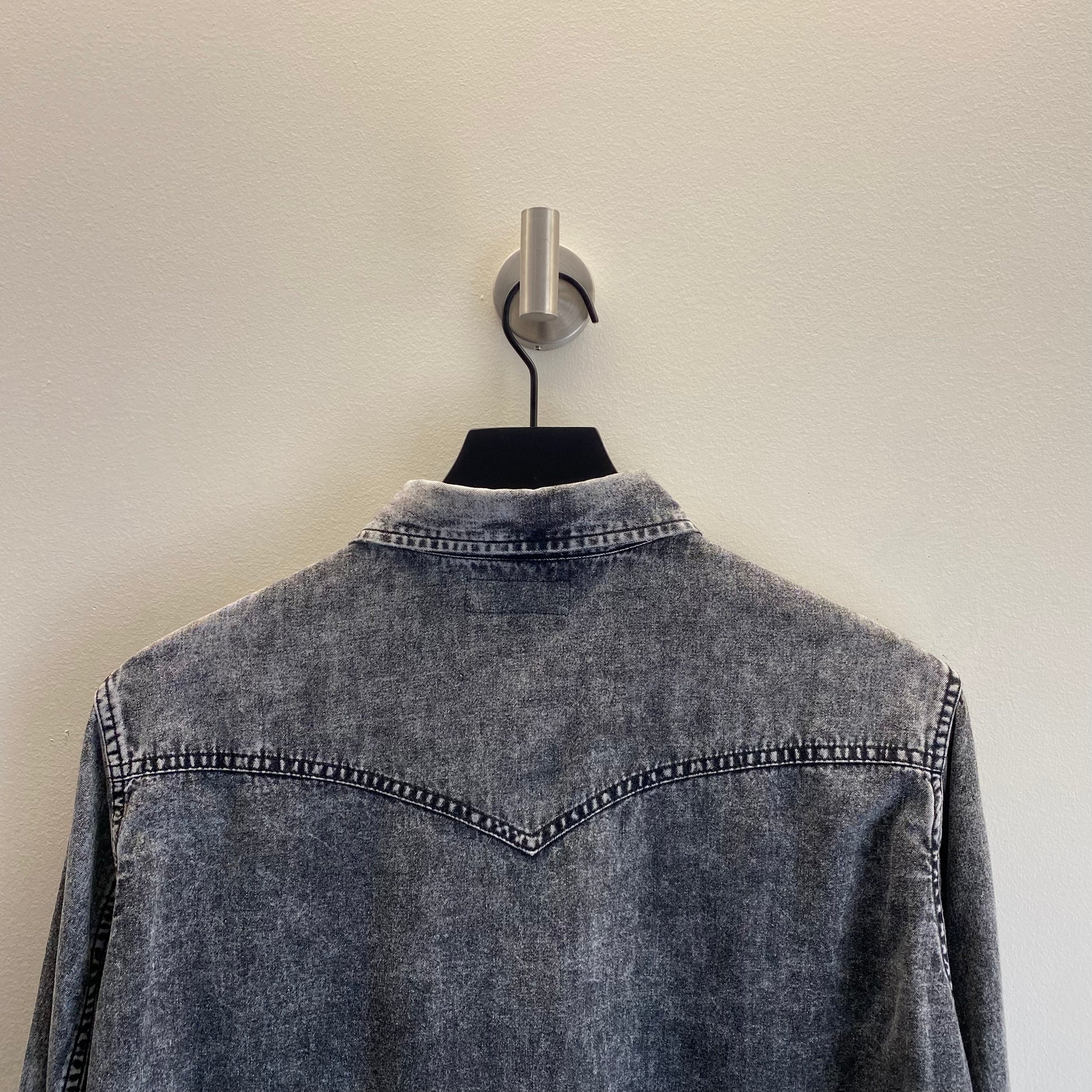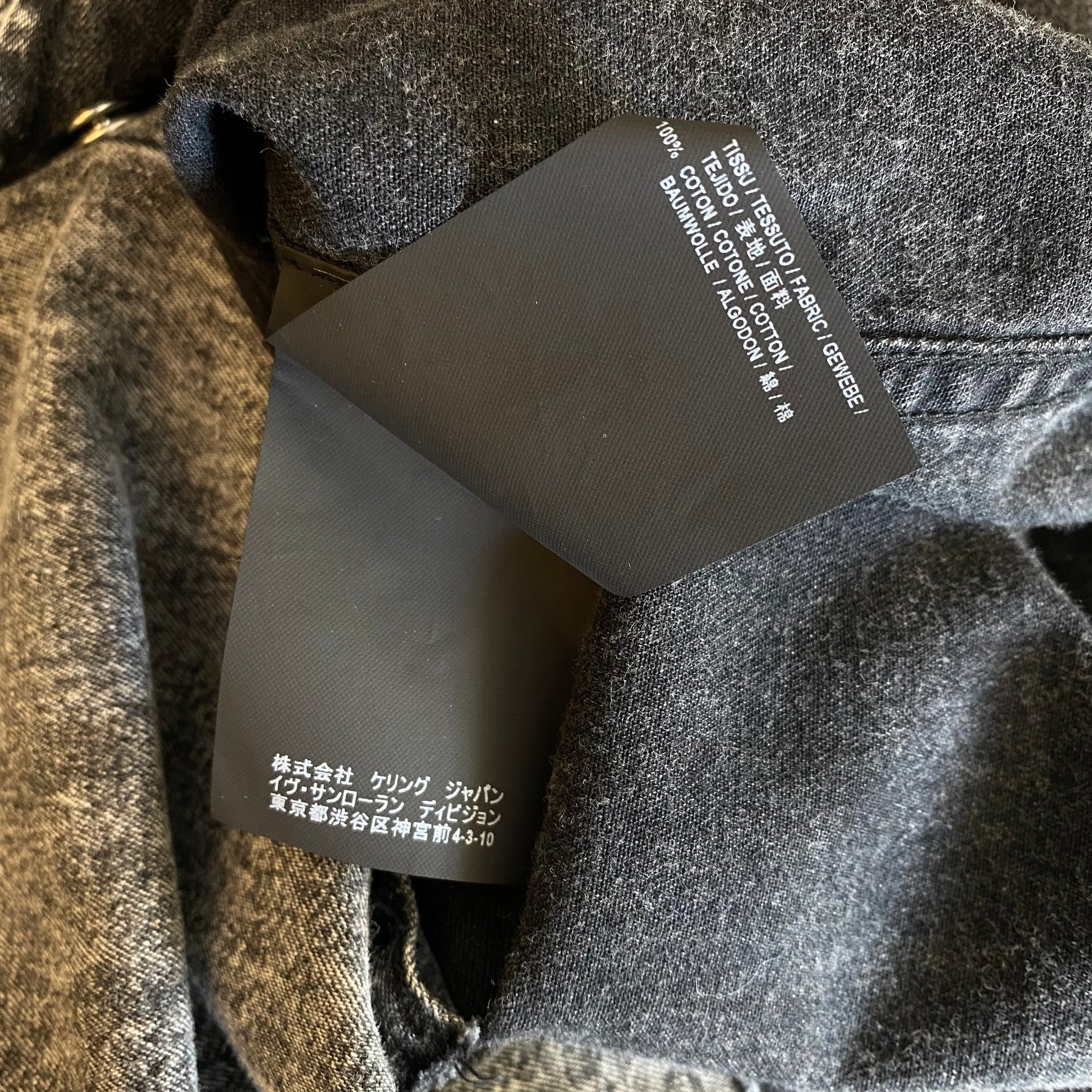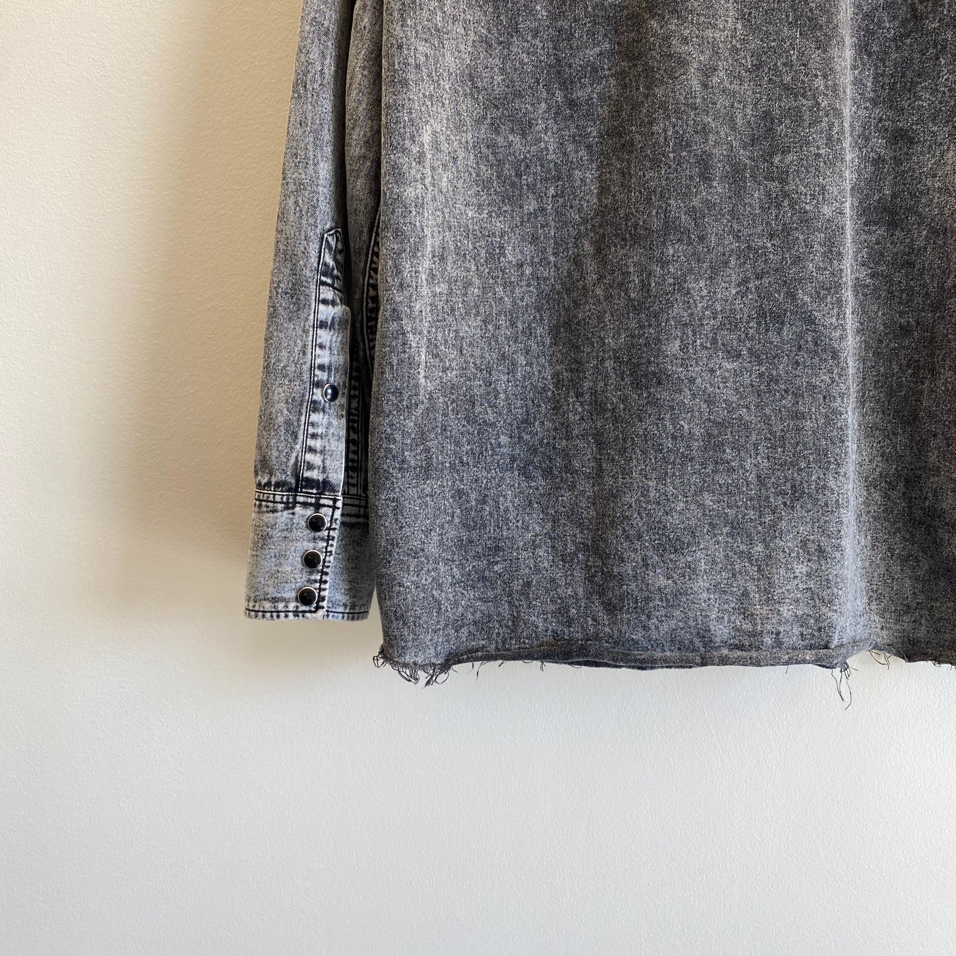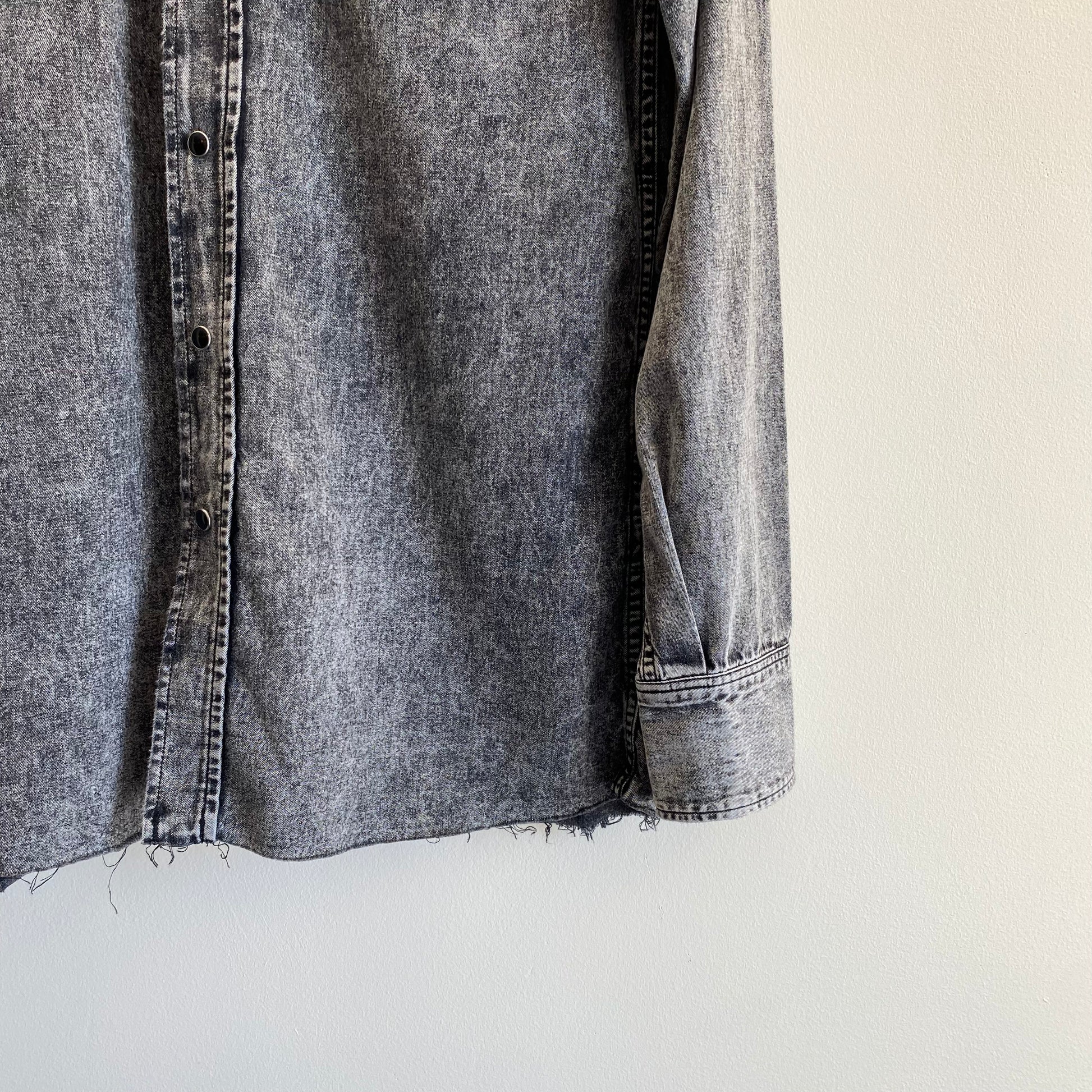 Saint Laurent Paris Raw Hem Washed Black Denim Western Shirt, Tonal Snap Buttons